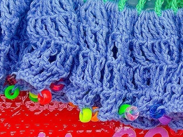 ほわっとした裾に、カラフルなビーズがついていて、きらめくよ~✩.*˚