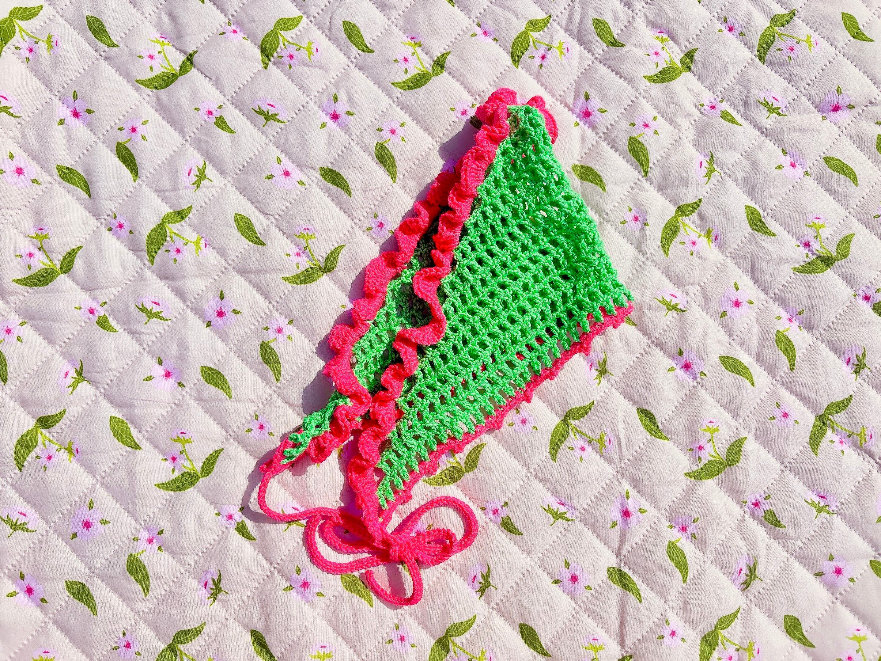あみあみバブーシュカ(グリーン×ふちネオンピンク)